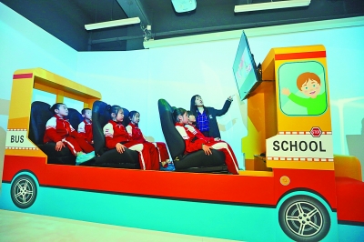 11月28日,天津市西青區(qū)西營門小學校園安全教育V實驗室正式開館運行。圖為該校師生們在安全教育V實驗室了解相關(guān)交通安全知識。