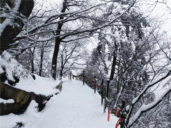過后,又看到了下棋亭,長(zhǎng)空棧道,華山松,西峰,南峰。想到金庸先生,想到“華山論劍”,“飛雪連天射白鹿,笑書神俠倚碧鴛”,伴隨了中國(guó)幾代人的武俠情懷。這里,金色的陽(yáng)光,湛藍(lán)的天空,皚皚白雪;站在南峰仰天池上,左手秦嶺群山,右手八百里秦川,這就是華山之巔!