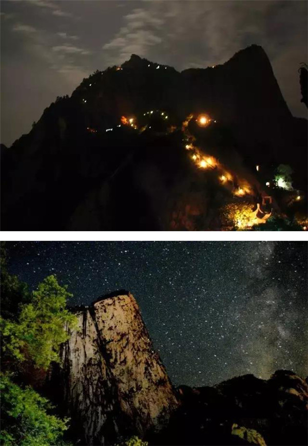 見慣了白天綺麗自然風(fēng)光的華山,其實華山的夜也是別有一番韻味。