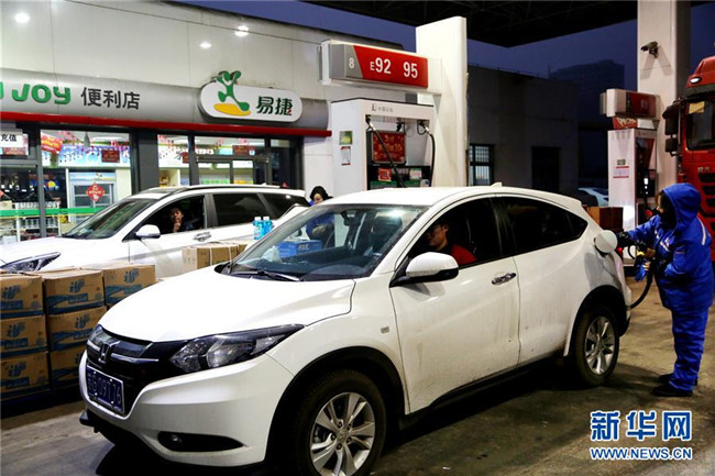 1月14日,河北省邢臺(tái)市任縣一加油站的工作人員在給車輛加油。新華社發(fā)(宋杰 攝)