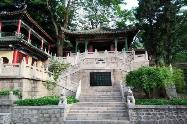 玉泉院的整體布局順應(yīng)了中國(guó)傳統(tǒng)的園林建筑布局風(fēng)格,“對(duì)稱美”的審美觀體現(xiàn)得十分鮮明,整體格局十分嚴(yán)道。正門居中,兩側(cè)回廊,西北東北兩角各一亭。西院面東有七真殿,東院面西就有華岳圣母殿。西有山蘇亭、希夷睡洞,東有運(yùn)氣亭、呂祖洞。正殿直對(duì)大門,用墻分割為一單體院落,拱門與前院相通、從視覺(jué)心理上給人以靜止、穩(wěn)重和居塵出塵之感,體現(xiàn)了道家中規(guī)中矩的“無(wú)為”思想和追求完善的審美情趣。