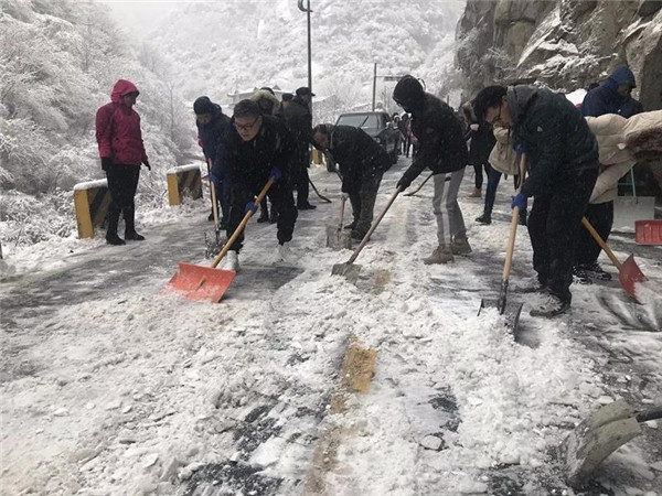 主峰區(qū)工作人員晝夜24小時不間斷清理積雪