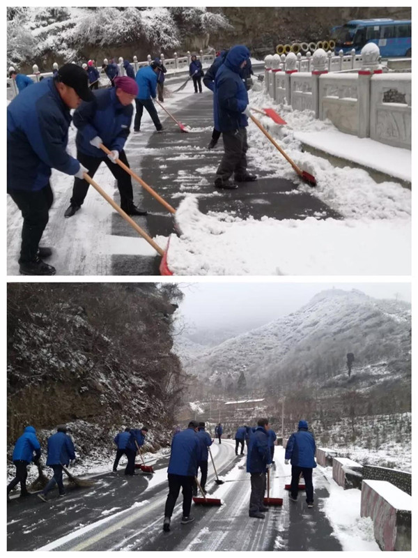 1月31日凌晨景區(qū)出現(xiàn)強(qiáng)降雪天氣,道路積雪嚴(yán)重影響行車安全。華旅集團(tuán)第一時間多渠道發(fā)布景區(qū)推遲運(yùn)營時間的信息,并向游客做好解釋工作,同時號召集團(tuán)各部室、各單位迅速組織人員赴進(jìn)山公路進(jìn)行掃雪除冰,經(jīng)過三個小時的全力清掃,東線進(jìn)山公路積雪清理完畢,景區(qū)在短時間內(nèi)恢復(fù)運(yùn)營,西線索道進(jìn)山公路及華山峪區(qū)域不斷加大清掃力度,盡力實現(xiàn)景區(qū)全線貫通。