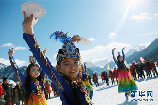 在天山天池景區(qū),小朋友在社火表演中跳舞(2月8日攝)。各地張燈結(jié)彩,處處歡聲笑語,地處中國西北邊陲的新疆各族群眾,新春佳節(jié)期間,耍社火、逛廟會、看演出、玩冰雪,載歌載舞,在濃濃的中華傳統(tǒng)文化氛圍中熱熱鬧鬧過大年。新華社發(fā)(周勇強(qiáng)攝)
