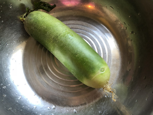 2.用刨子刨成細(xì)絲,加點(diǎn)鹽腌一下出水