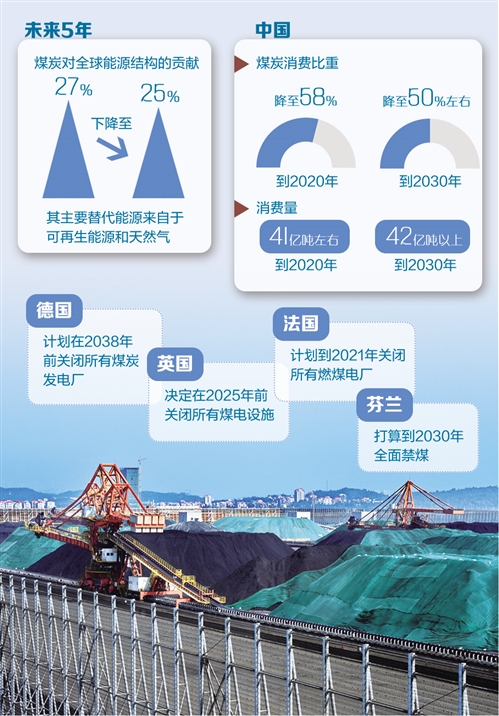 《報(bào)告》顯示,未來5年全球煤炭需求將保持穩(wěn)定。歐洲和美國市場煤炭消耗將下降,但其下降的份額將被印度和其他亞洲國家的增長抵消。未來5年,煤炭對全球能源結(jié)構(gòu)的貢獻(xiàn)將從27%下降至25%,其主要替代能源來自于可再生能源和天然氣。