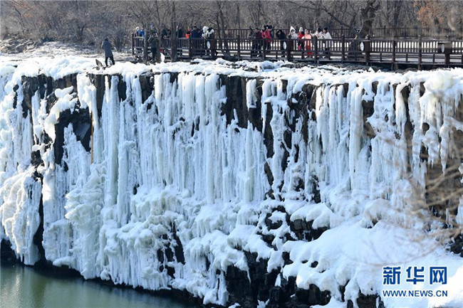 去冬今春以來(lái),黑龍江省鏡泊湖的吊水樓冰瀑景色壯觀,吸引許多游人前來(lái)觀賞。 新華社記者 王建威 攝