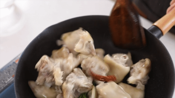 3.鍋中適量食用油,放入八角、香葉、蔥段、姜片、干辣椒爆香,再倒入豬蹄煸炒幾分鐘,直至豬皮起泡為止。