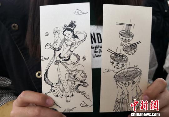 圖為將蘭州牛肉面融入敦煌飛天創(chuàng)作?!⒂裉?攝