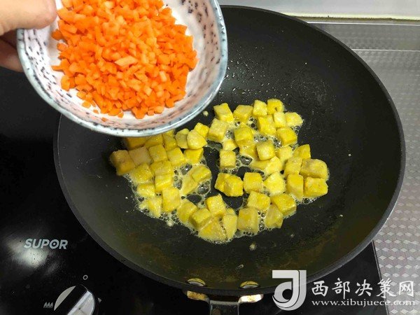 6.放入胡蘿卜丁翻炒均勻