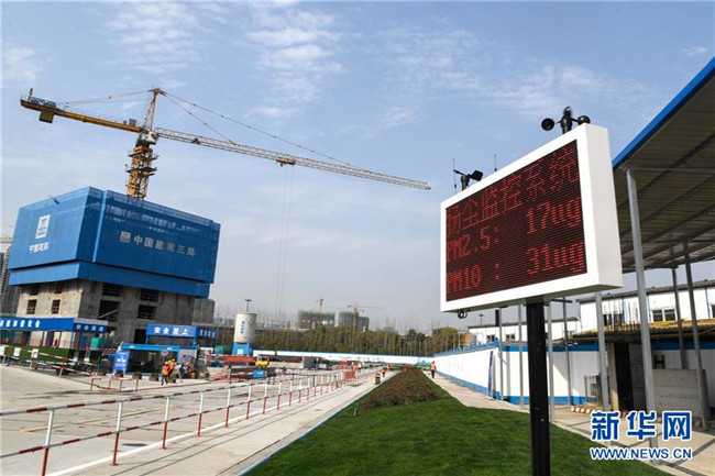 這是3月26日在“浙江智慧之門”項(xiàng)目現(xiàn)場拍攝的揚(yáng)塵監(jiān)控系統(tǒng)顯示屏。據(jù)了解,揚(yáng)塵超過閥值就能自動啟動噴淋設(shè)備,給工地降塵。新華社記者黃宗治攝