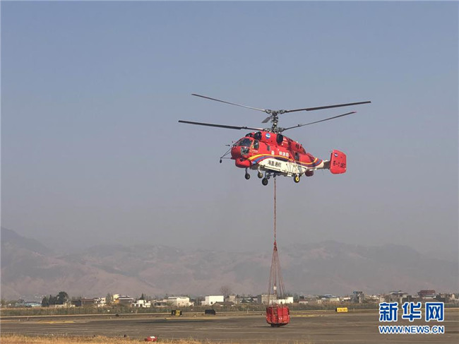 4月1日,滅火直升機從西昌機場起飛。新華社發(fā)(林繼平 攝)