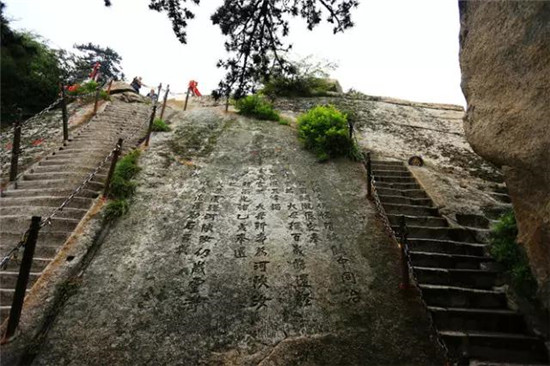 華山系一塊完整碩大的花崗巖體構(gòu)成,歷史衍化可追溯至27億年.“太華之山,削成而四方,其高五千仞,其廣十里。”華山之險居五岳之首,登山之路蜿蜒曲折,長達(dá)12公里,到處都是懸崖絕壁,有“自古華山一條道”的說法。