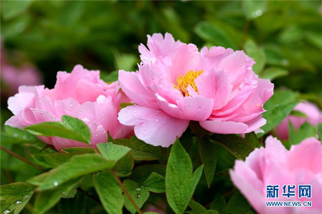 這是石家莊市正定榮國(guó)府影視基地盛開的牡丹花(4月13日攝)。時(shí)下,河北石家莊正定榮國(guó)府影視基地內(nèi)的牡丹花次第開放,在春雨的滋潤(rùn)下顯得格外晶瑩剔透、美麗嬌艷。 新華社發(fā)(陳其保 攝)