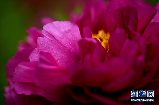 這是在石家莊市正定榮國(guó)府影視基地拍攝的牡丹花(4月13日攝)。時(shí)下,河北石家莊正定榮國(guó)府影視基地內(nèi)的牡丹花次第開放,在春雨的滋潤(rùn)下顯得格外晶瑩剔透、美麗嬌艷。 新華社發(fā)(陳其保 攝)