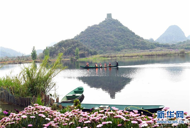 這是普者黑國家濕地公園一景(4月14日攝)。 位于云南省文山壯族苗族自治州丘北縣的普者黑國家濕地公園山水秀麗、風景如畫,吸引人們前來休閑度假。 新華社記者楊宗友攝