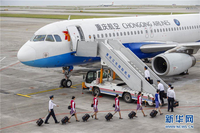 4月18日,重慶江北國際機場停機坪上,重慶航空公司的試飛機組成員在有序登機。當日,隨著重慶航空一架客機安全平穩(wěn)降落在巫山機場,標志著地處長江三峽核心區(qū)的巫山機場試飛工作圓滿成功。本次試飛對巫山機場陸空通信、導航設(shè)施、跑道道面、滑行路線、飛行區(qū)標志標識、機場凈空、飛行程序、機場運行標準等進行全面檢驗,各項參數(shù)和指標正常,機場相關(guān)設(shè)施、設(shè)備均符合行業(yè)規(guī)范要求,飛行區(qū)已基本具備民航飛機通航條件,有望在今年6月正式通航。新華社記者 劉潺 攝