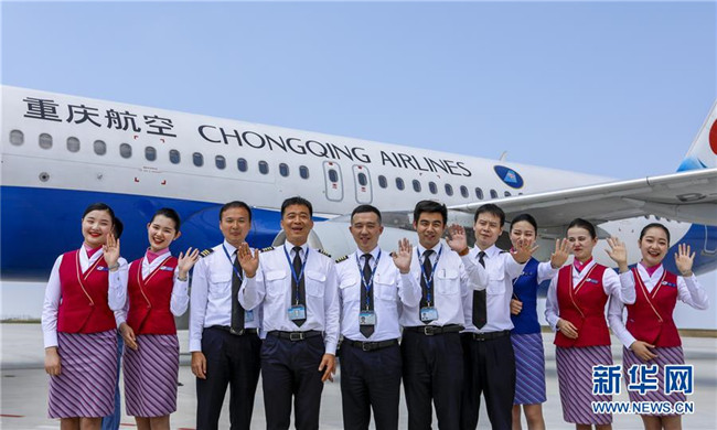 4月18日,重慶巫山機場停機坪上,重慶航空公司的試飛機組成員在試飛成功后合影。當日,隨著重慶航空一架客機安全平穩(wěn)降落在巫山機場,標志著地處長江三峽核心區(qū)的巫山機場試飛工作圓滿成功。本次試飛對巫山機場陸空通信、導航設(shè)施、跑道道面、滑行路線、飛行區(qū)標志標識、機場凈空、飛行程序、機場運行標準等進行全面檢驗,各項參數(shù)和指標正常,機場相關(guān)設(shè)施、設(shè)備均符合行業(yè)規(guī)范要求,飛行區(qū)已基本具備民航飛機通航條件,有望在今年6月正式通航。新華社記者 劉潺 攝