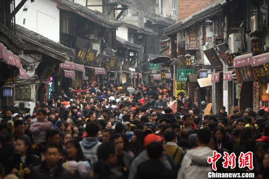 資料圖:游客擠滿(mǎn)了古鎮(zhèn)街道。陳超 攝