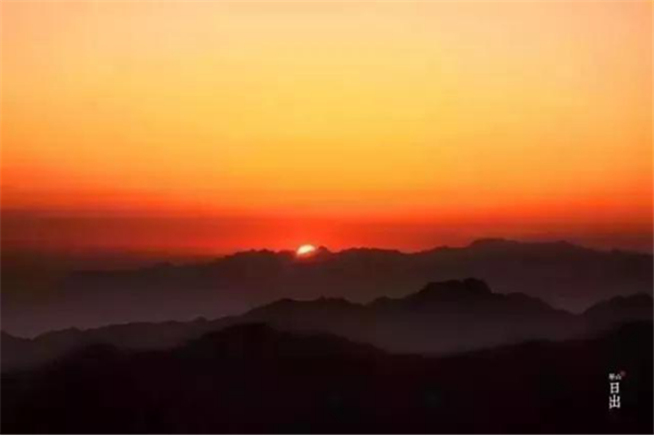是時,但見夜幕自東方悄然隱退,晨曦初露,漸漸霞光瑰麗,云源奔涌。瞬間,一輪火球噴薄而出,繼而光芒四射,氣象萬千,整個世界大放光明,游人身心為之一振。待云霧散盡,蒼松翠柏,則更加清麗悅目,美妙神奇。故而,游名山者必登華山,登華山者必觀日。華山日出亦被列為華山自然風(fēng)光中的重要景觀之一。