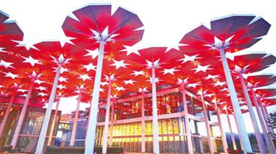 由94把巨大鋼“花傘”構(gòu)成的國(guó)際館,宛如一片絢爛的“花海”。人民日?qǐng)?bào)記者賀勇攝