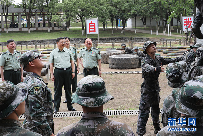 5月21日,中共中央總書(shū)記、國(guó)家主席、中央軍委主席習(xí)近平到陸軍步兵學(xué)院視察。這是習(xí)近平觀看學(xué)員進(jìn)行極限訓(xùn)練。新華社記者 李剛 攝