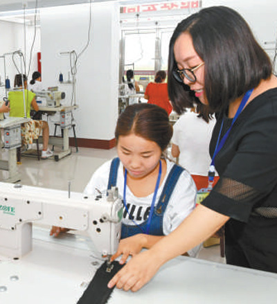 河曲縣開展全民技能提升培訓(xùn),老師指導(dǎo)學(xué)員加工服裝。 |