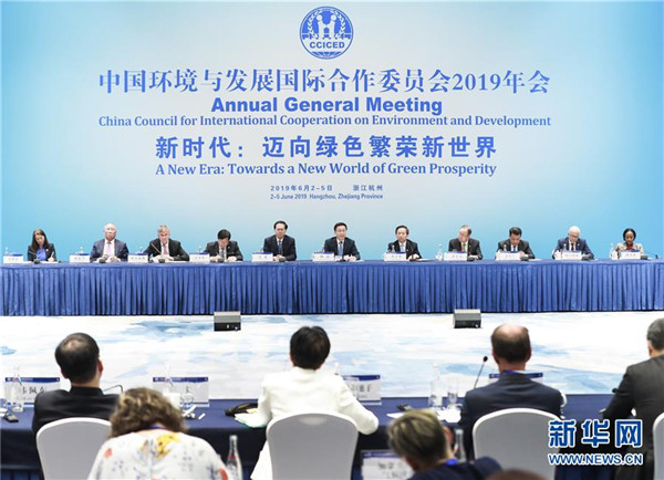 6月4日,中共中央政治局常委、國務院副總理、中國環(huán)境與發(fā)展國際合作委員會主席韓正在浙江省杭州市出席國合會2019年年會并講話。新華社記者龐興雷攝