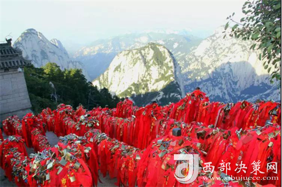 在華山,最美好的是在金鎖關(guān),將你我的名字用一把連心鎖鐫刻在一起,這樣我中有你,你中有我。