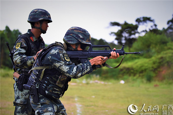 特戰(zhàn)隊員在進行步槍記憶指向射擊