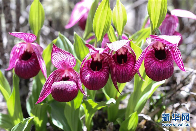 這是在四川黃龍自然保護(hù)區(qū)黃龍溝拍攝的西藏杓蘭(6月12日攝)。 新華社記者江宏景攝