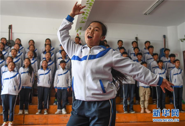 鹽井中學(xué)的學(xué)生們?cè)谏衔锢碚n(6月6日攝)。年輕的藏族女教師坐在鋼琴前,手指靈動(dòng)地彈奏樂(lè)曲,兩名學(xué)生拉起弦子伴奏,三十多名學(xué)生站成四排,齊聲合唱。學(xué)校籃球場(chǎng)上數(shù)名身材高大的學(xué)生,正在體育老師的組織下進(jìn)行激烈的分組對(duì)抗,不一會(huì)兒,學(xué)生們個(gè)個(gè)汗流浹背。綜合樓三樓的化學(xué)實(shí)驗(yàn)室內(nèi),身穿白色大褂的學(xué)生,分成若干小組,正在做簡(jiǎn)單的化學(xué)實(shí)驗(yàn)。這一幕幕,同時(shí)出現(xiàn)在西藏昌都市芒康縣鹽井中學(xué)。新華社記者晉美多吉攝