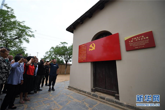 在河北西柏坡中國共產(chǎn)黨七屆二中全會會址,黨員重溫入黨誓詞(6月20日攝)。新華社記者 朱旭東 攝