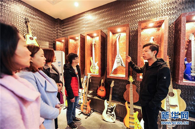 吳起介紹,正安縣正全力推進(jìn)世界知名吉他生產(chǎn)聚集區(qū)建設(shè),按照吉他工業(yè)、吉他文化、吉他旅游“三位一體”同步發(fā)展思路,努力把“正安·國際吉他產(chǎn)業(yè)園”打造成國家級(jí)文化產(chǎn)業(yè)示范園。2019年,入駐投產(chǎn)企業(yè)將達(dá)到70家以上,實(shí)現(xiàn)年產(chǎn)吉他700萬把,產(chǎn)值70億元,新增就業(yè)2000人以上。新華社記者 李驚亞