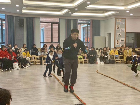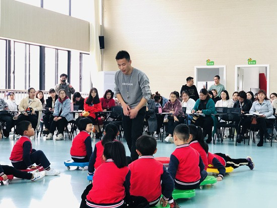 3月29日,浙江省建德市欽堂中心幼兒園教師鄭勇江在執(zhí)教大班健康活動公開課《趣味運(yùn)動會》。鄭勇江供圖