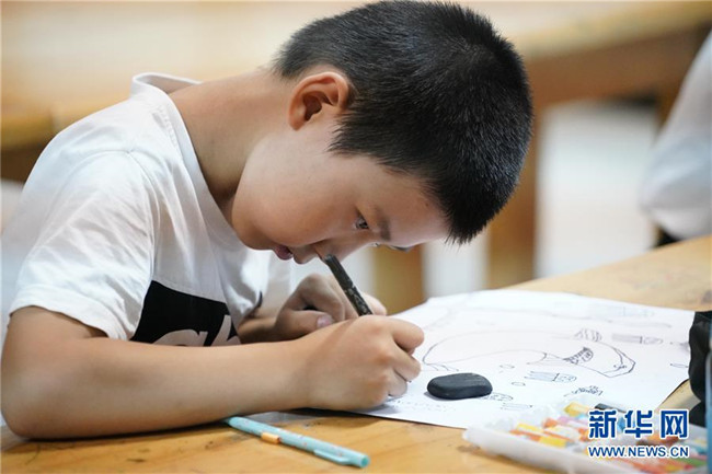 7月30日,學(xué)生在河北省涉縣青少年活動(dòng)中心畫(huà)畫(huà)。