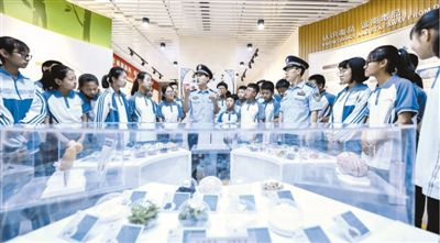 近日,在山東省棗莊市臺(tái)兒莊古城中學(xué)的禁毒教育基地,民警向?qū)W生介紹新型毒品的種類、特征和危害,提升他們識毒、防毒、拒毒的意識和能力。新華社記者 高啟民攝