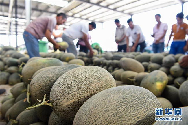 在新疆果品(伽師)批發(fā)交易市場(chǎng),客商在挑選伽師瓜(8月10日攝)。新華社記者 丁磊 攝