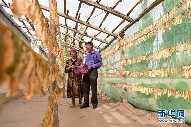 8月11日,在新疆伽師縣,瓜農(nóng)在晾曬伽師瓜干。新華社記者 丁磊 攝