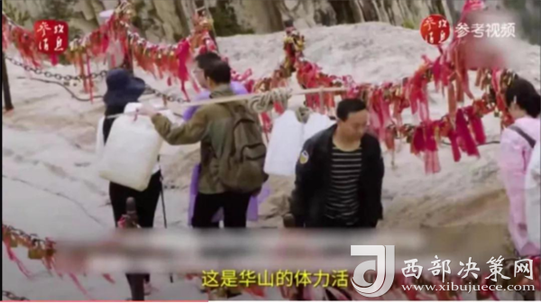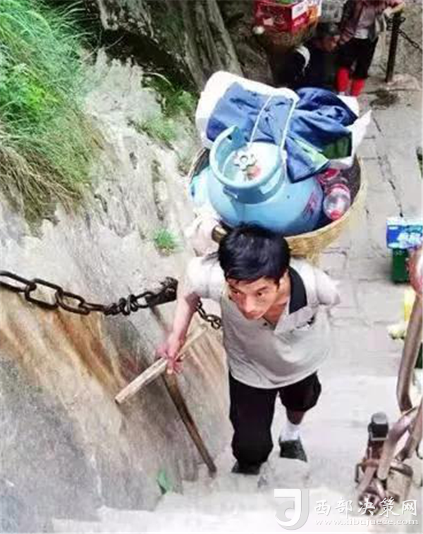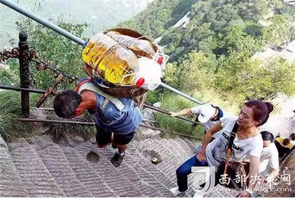 一位挑山工說(shuō):挑夫這個(gè)苦力活,已經(jīng)沒(méi)有年輕人來(lái)做。如今35歲以下的年輕人,對(duì)這個(gè)活瞧不上眼,寧可閑著,也不做挑夫。但是,華山景區(qū)的正常運(yùn)營(yíng)及后期建設(shè),必須依賴于挑夫。這活兒,總得有人做。