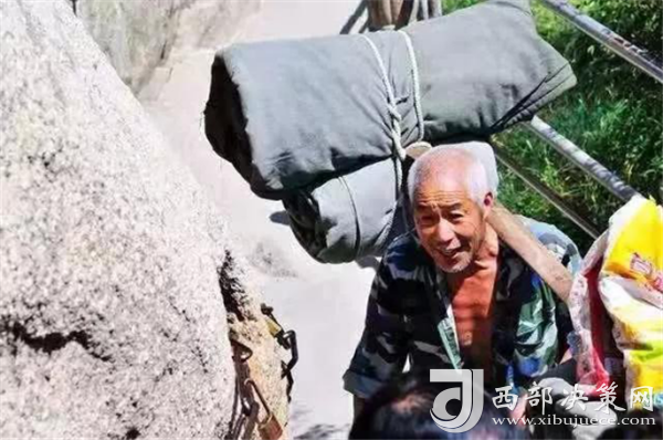 可是,有一群人,每天背著幾十斤重的貨物在華山上下,如履平地,數(shù)十年如一日,這就是華山上的別樣風(fēng)景---挑山工。一副扁擔(dān)、一根長(zhǎng)繩,或者一個(gè)背簍、一根登山用的手杖就是華山挑山工掙錢(qián)養(yǎng)家的家伙什。