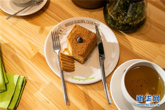 這是8月28日在俄羅斯首都莫斯科的一家咖啡廳內(nèi)拍攝的俄式蜂蜜蛋糕。 新華社記者 白雪騏 攝
