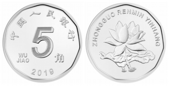 值得一提的是,5角硬幣材質(zhì)由鋼芯鍍銅合金改為鋼芯鍍鎳,色澤由金黃色改為鎳白色。正背面內(nèi)周緣由圓形調(diào)整為多邊形。直徑保持不變。