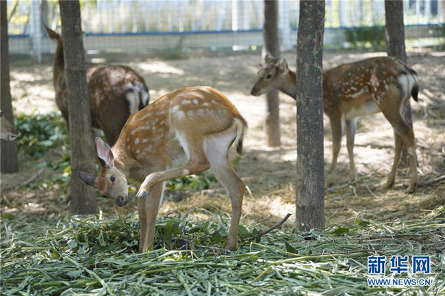 梅花鹿在雄安市民服務(wù)中心內(nèi)休憩(8月30日攝)。新華社記者 邢廣利 攝