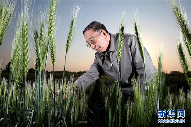 李振聲院士在中國(guó)科學(xué)院遺傳與發(fā)育生物學(xué)研究所農(nóng)業(yè)資源研究中心南皮生態(tài)農(nóng)業(yè)試驗(yàn)站(中科院南皮站)的試驗(yàn)田里(2014年5月5日攝)。新華社記者 金立旺 攝