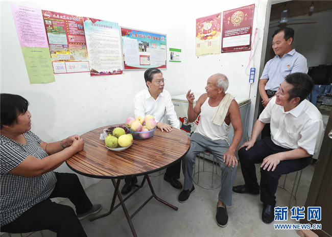 9月9日至11日,中共中央政治局常委、中央紀(jì)委書記趙樂(lè)際在河北調(diào)研。這是9月9日,趙樂(lè)際在曲陽(yáng)縣王家屯村走訪看望農(nóng)民群眾,了解脫貧攻堅(jiān)、基層廉政建設(shè)和干部作風(fēng)等情況。 新華社記者 龐興雷 攝