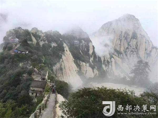 眾所周知,華山在五岳之中以“險(xiǎn)峻”著稱。素有“奇險(xiǎn)天下第一山”之譽(yù),華山的主體是由一塊完整碩大的花崗巖體構(gòu)成的,挺拔地屹立在渭河平原。東、南、西三峰拔地而起,如利刃削就。由于華山太險(xiǎn),所以唐代以前很少有人登臨,歷代君王祭祀西岳,也只是在山下西岳廟中舉行大典。據(jù)記載,直到魏晉南北朝時(shí)期,還沒(méi)有通向華山峰頂?shù)牡缆?。唐代才逐漸在北坡沿溪谷而上開(kāi)鑿了一條險(xiǎn)道,也從此有了“自古華山一條路”的說(shuō)法。