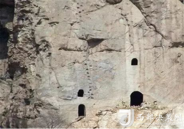 乘坐西峰索道時,游人在抵達中站前,俯視北望,白雀寺三眼石窟清晰可辨。(供稿:華旅集團營銷中心)