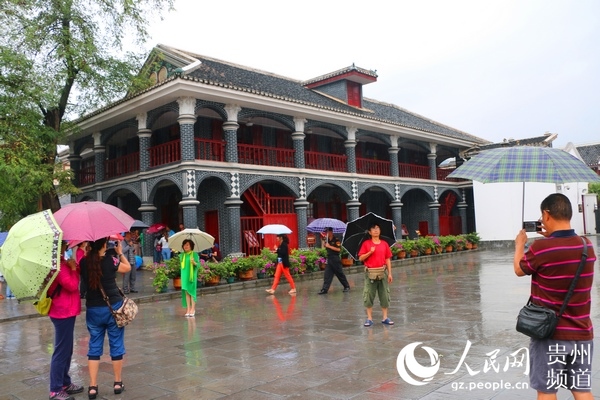游客在遵義會址前拍照留念。王欽 攝
