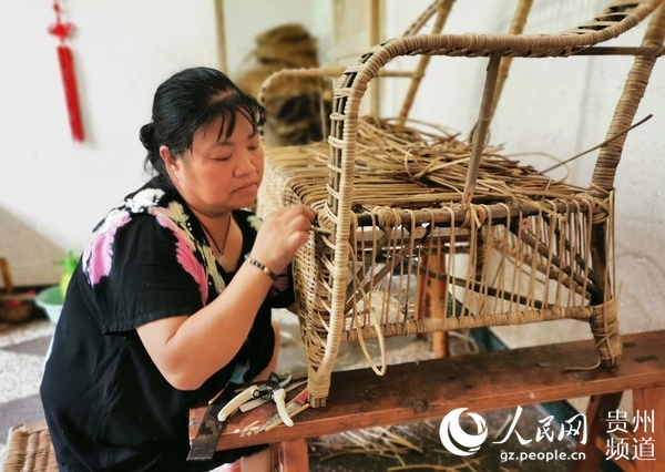 村民正在編織藤編產品。王欽 攝
